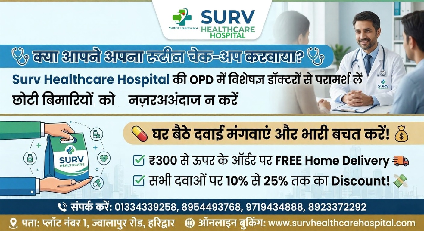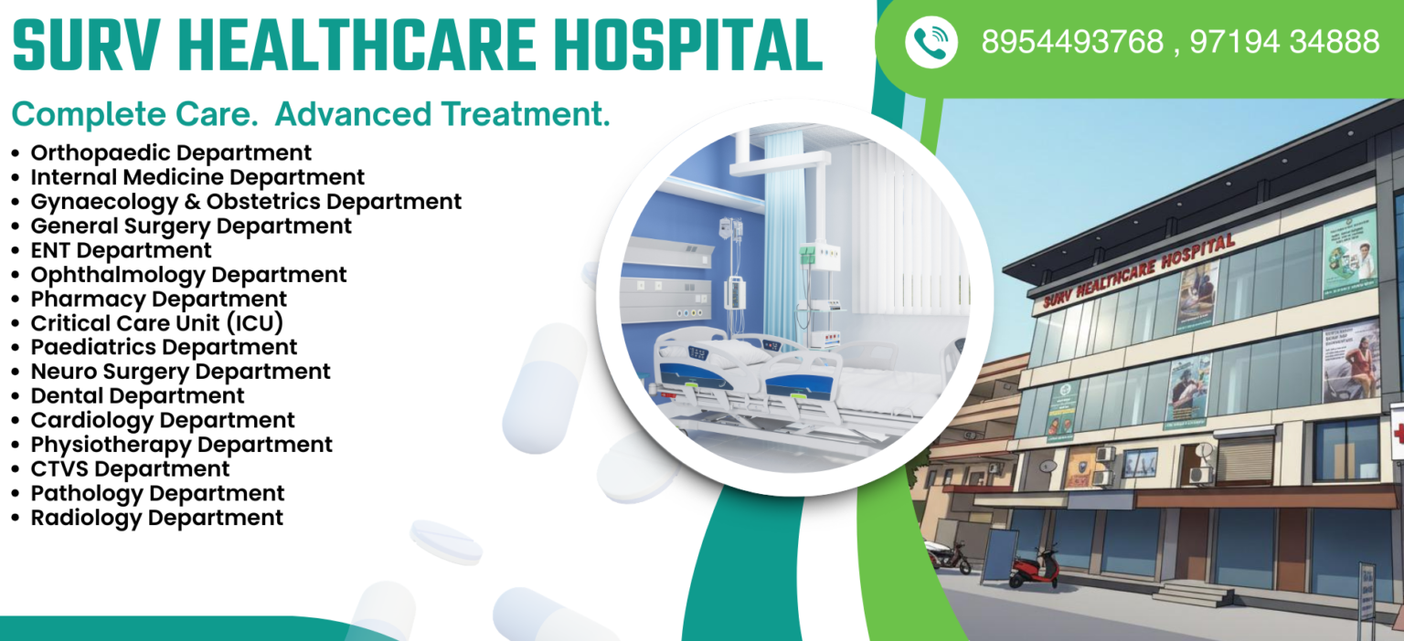 You can book an appointment at Surv Healthcare Hospital by calling our reception, visiting the OPD registration desk, or sending your details on WhatsApp. For emergencies, our 24Γ7 Emergency Department is always available.